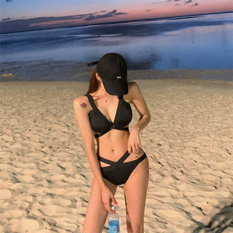 ツーピース水着 ビキニ 韓国風 セクシー シンプル スリム 人気 プール パッド M~XL